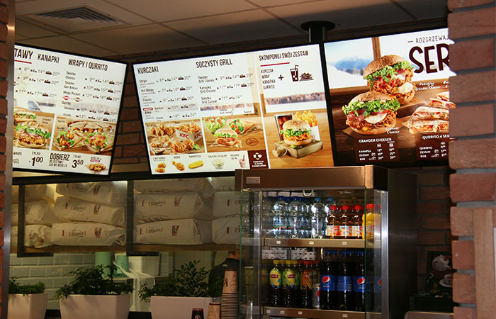 - Gắn ở quầy: nhiều cửa hàng đồ ăn nhanh, thức uống thường chọn gắn hộp đèn ở quầy bán để khách hàng dễ chọn món.