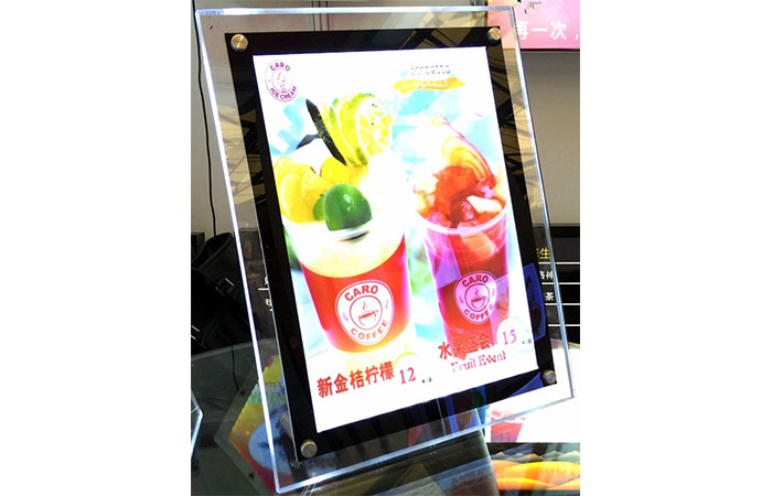 - Để trên bàn: một số cửa hàng có thể chọn loại hộp đèn siêu mỏng cỡ nhỏ để luôn ở trên bàn để khách hàng tiện gọi món hơn.